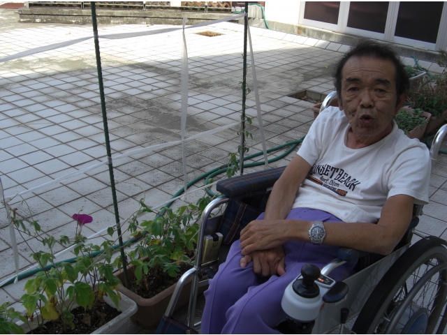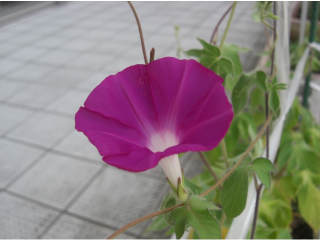 利用者のS様が育てたあさがおが美しく咲きました! 種まきも、水やりも、棒を立てるのもひとりで行ったそうです。 毎年、野菜や花を育ててみなの目を楽しませてくれるS様です。 今日は1つしか咲いていないけど、たくさん咲いているときもあるそうです。でも「今咲いてるから写真取りに来て!」と呼びに来ていただいたので、すぐに撮影しました。 愛厚希全の里 広報委員会