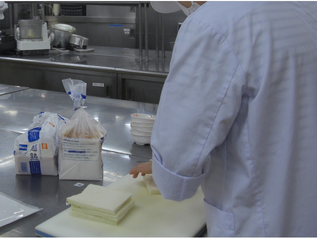 管理栄養士の臨地実習で、名古屋学芸大学の学生さんが2名 みえています。 初日は台風の影響で中止になるというトラブルに見舞われましたが、 厨房業務、食事介助、献立表作成などに取り組んでいます。 おやつ作りの実習では、パンプリンを作成しました。