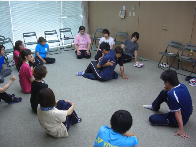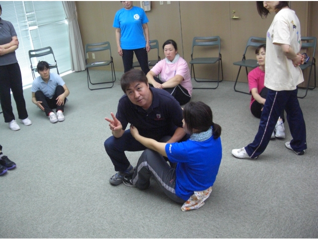 みんな汗をかきながら介護の技術を学びました。青山先生のお話も分かりやすく、楽しい研修でした。