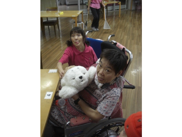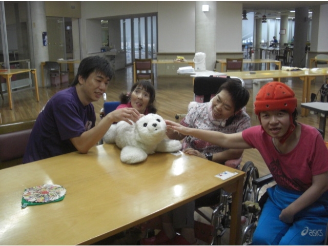パロの周りには利用者様が集まり、笑顔が溢れていました。 愛厚希全の里 広報委員会