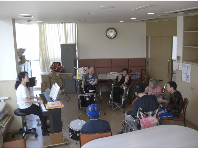希全の里では、週に1回、音楽療法士による集団音楽療法が実施されています。