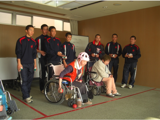グループに分かれてボッチャで交流しました。 外の清掃活動も、寒い中で頑張っていただき、 きれいになりました!