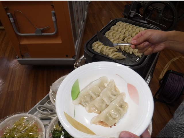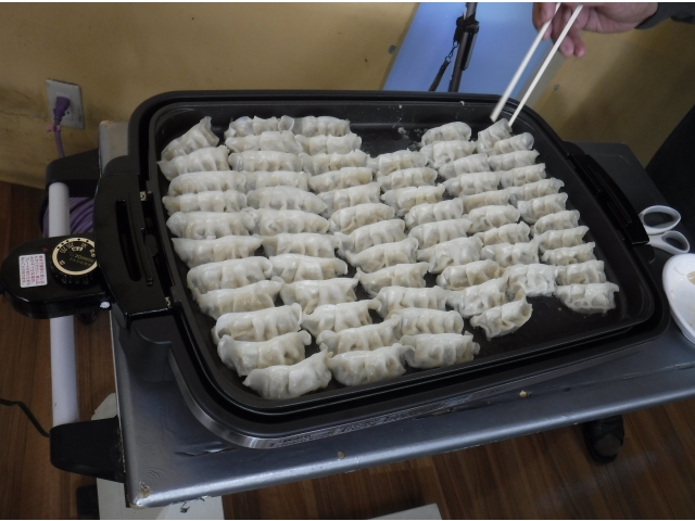 「パチパチ」 ギョーザの焼ける音とごま油のいい匂い~(^O^)アツアツのギョーザに皆さん箸と笑顔が止まりません(#^.^#)おいしく楽しいひと時でした(^^♪
