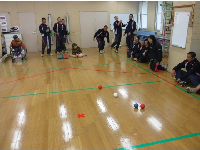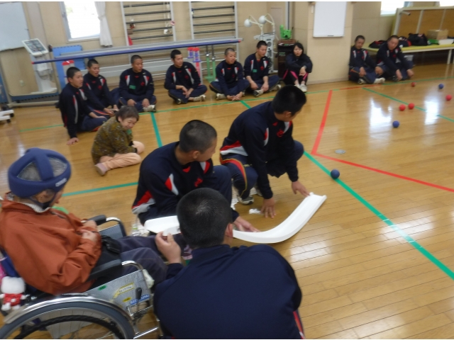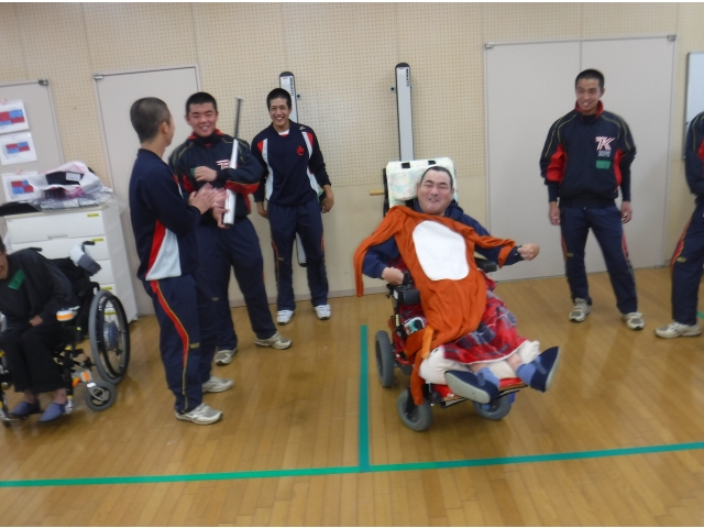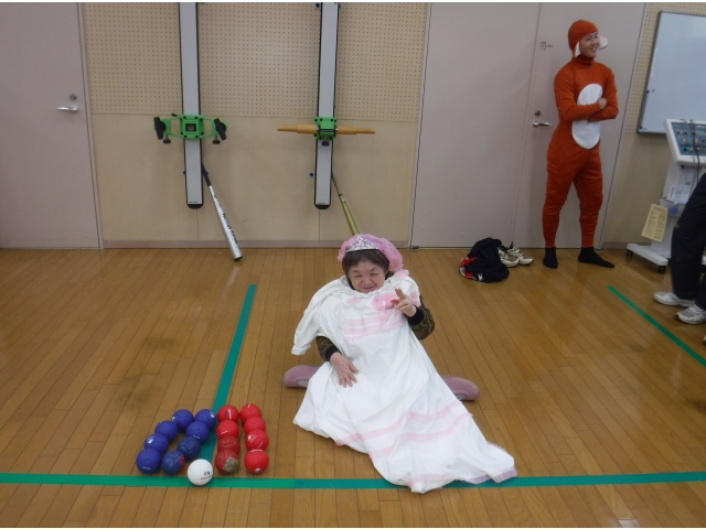 ボッチャでは、利用者様との混合チームで対戦し、負けたチームは、ものまねや仮装を行い、おおいに盛り上がりました。