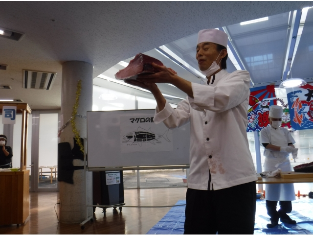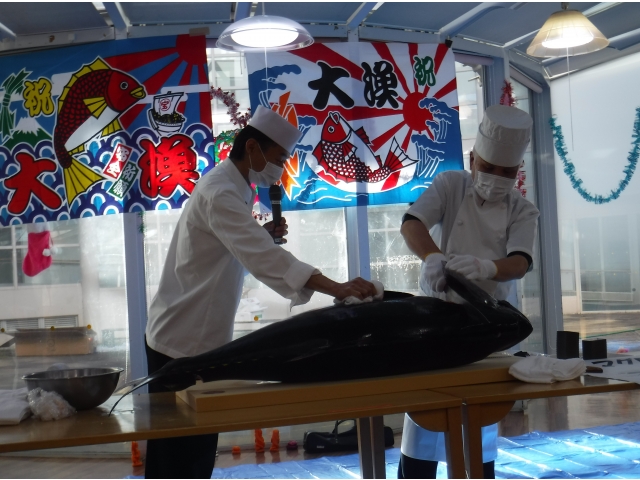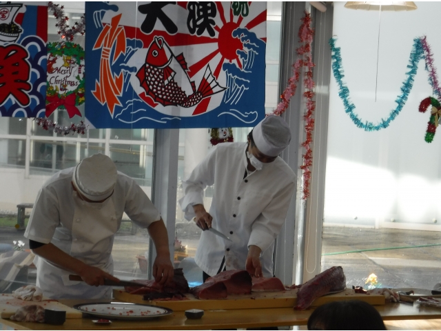 12月15日、クリスマス会でマグロ解体ショーを行いました!