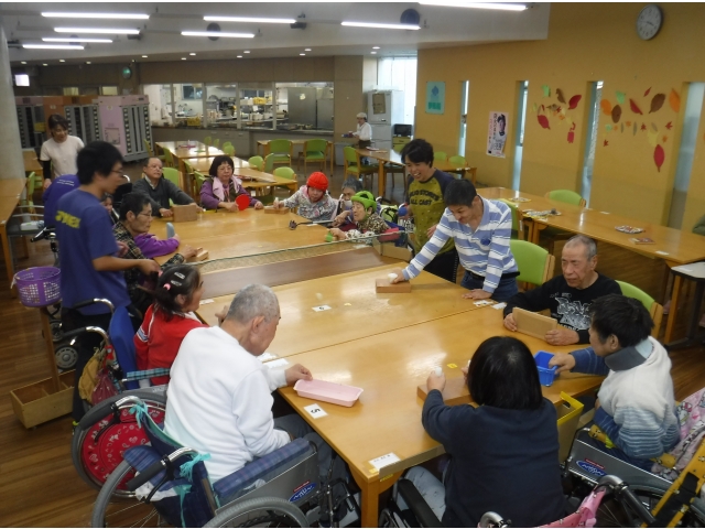 試合が進むにつれて身体の動きが大きくボールの動きも速くなり、笑っていた表情も、最後には真剣そのものでした。応援する職員も手に汗を握る展開でした。