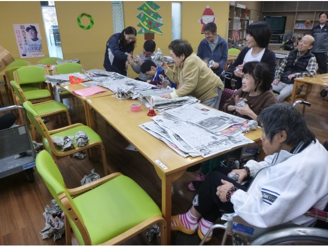 「新聞紙を丸める」ことと「投げる」ことがストレス発散にもなるし、手のリハビリにもなって一石二鳥です。