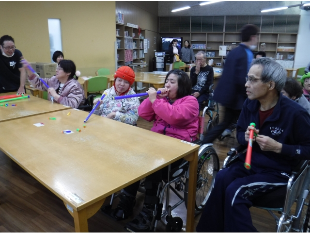 吹き矢は口のリハビリの他に血液循環を促進したり、ストレス解消につながり、心身共に様々な効果が期待できるそうです。