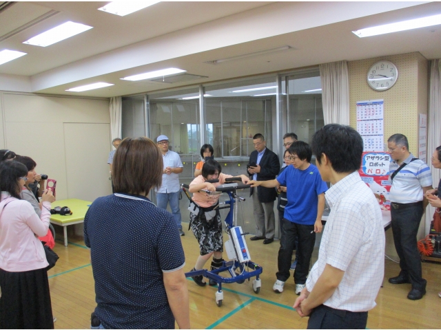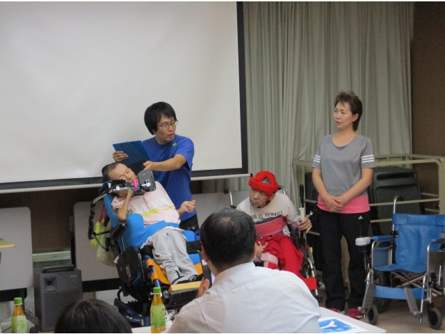 車いす教室では、障がいのある方が普段使用している車いすをいくつか紹介し、施設見学では、一般浴室や機械浴室、介護ロボットやボッチャの様子、就労継続支援B型事業所の印刷・軽作業・喫茶の様子などを見学していただきました。