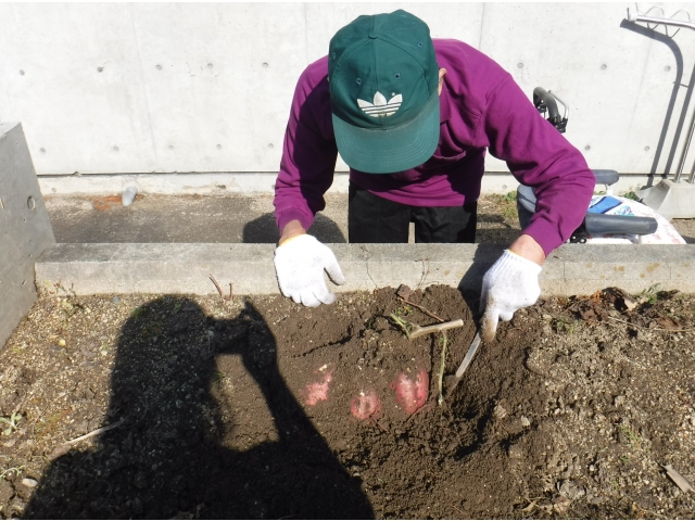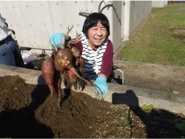 みなさん大切に育てたお芋を傷つけないようにゆっくりと慎重に掘り進めていましたが、深く広く広がった根っこに大苦戦。