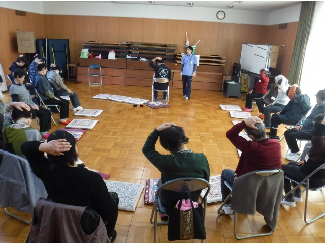前回との大きな違いは、椅子に座ったままできる項目を多くしたことです。また、分かり易くする工夫としてモデル役と解説者役を設けたことです。