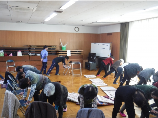 第3回リハビリ健康体操を平尾地区市民館で行い、17名の方に参加していただきました。