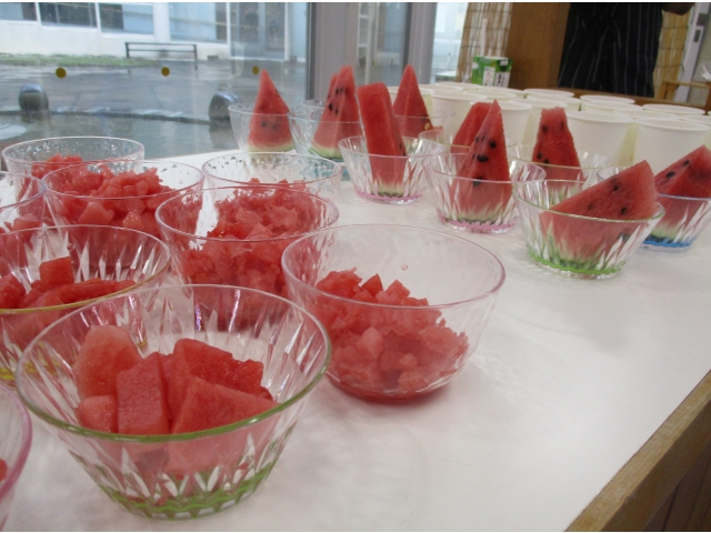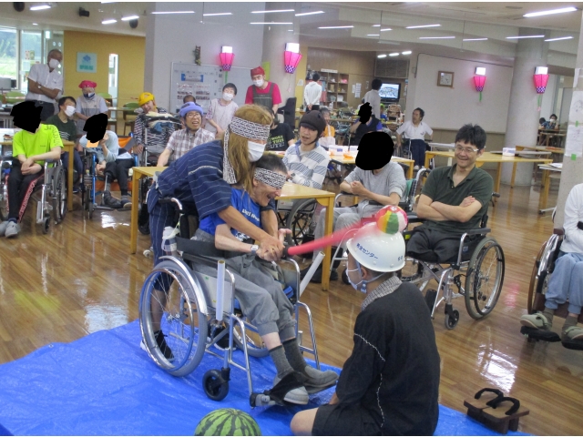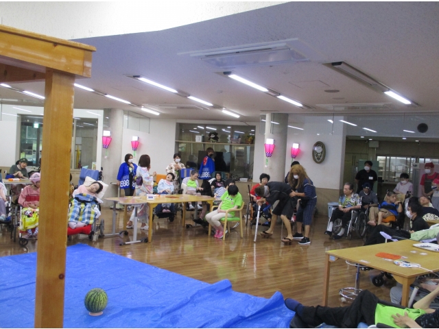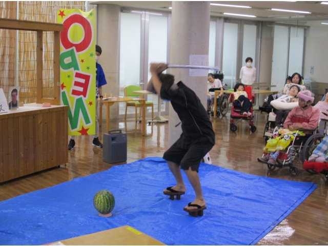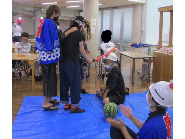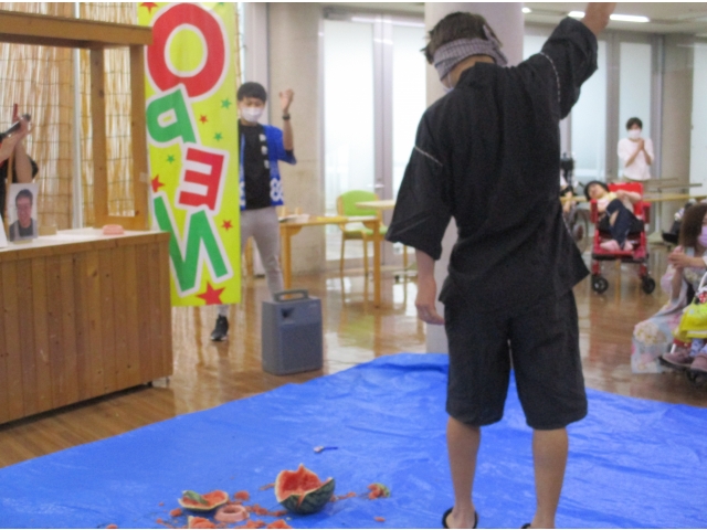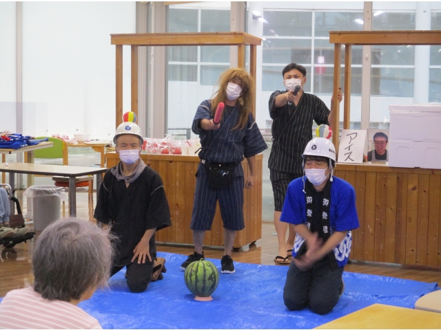 第1部は職員による寸劇を交えてスイカ割り。たいへん盛り上がりました♪