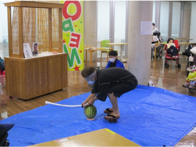 さあ、第2部は利用者様にスイカを割っていただきましょう。