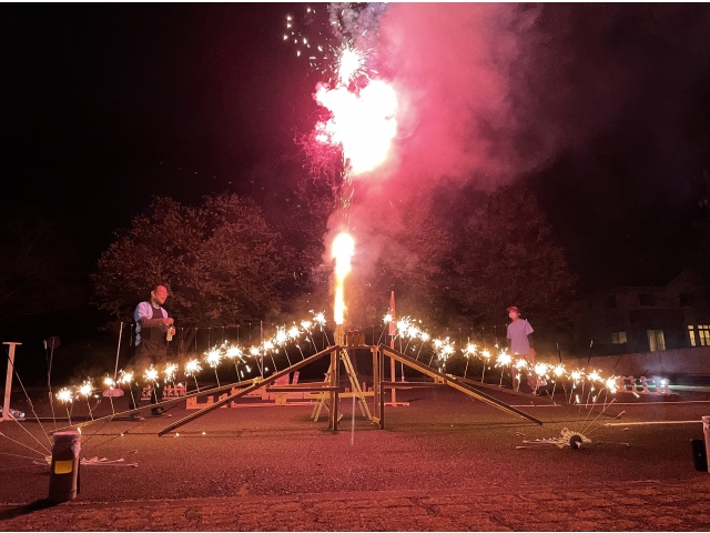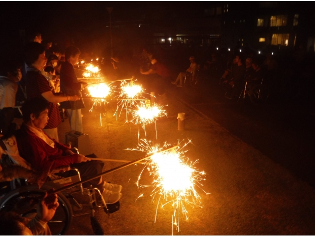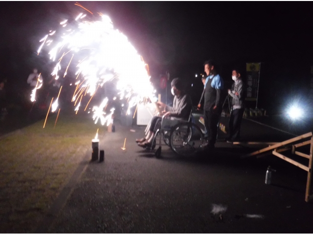 仕掛け花火、手持ち花火、打ち上げ花火を行い、拍手喝さいで締めくくることができました。