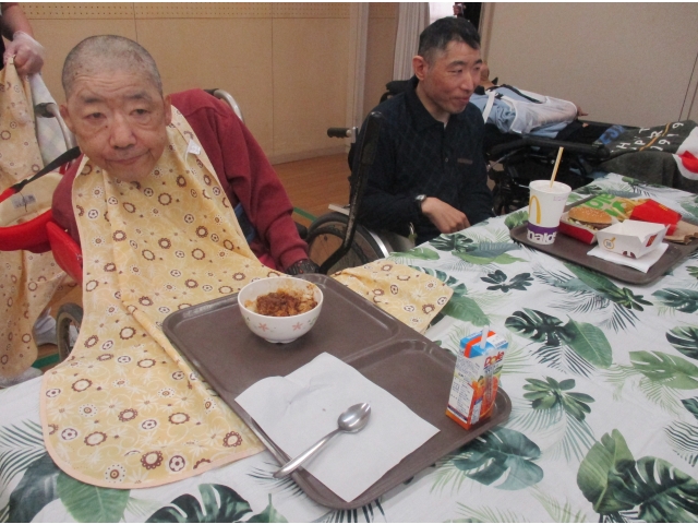 希全の里では外出を自粛している今、ご利用者様の楽しみとしてテイクアウトフード会食で食を楽しんでいます‼♪