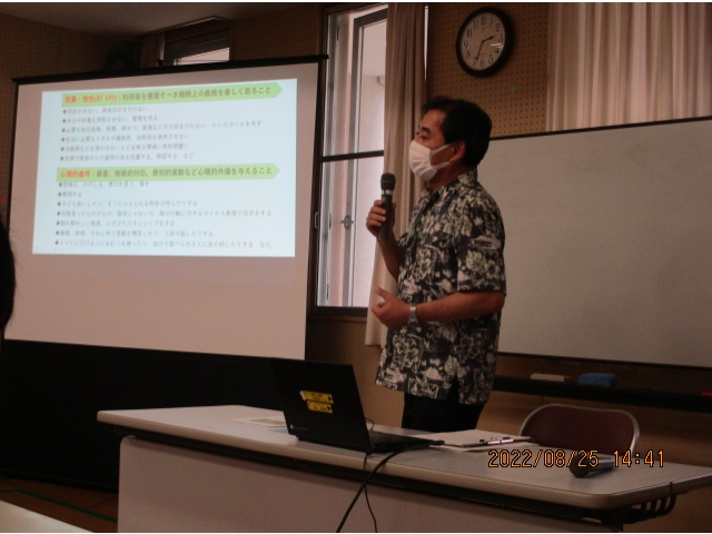 なお、続けて「感染症・食中毒防止」をテーマに野澤主任、都築栄養士が講師として日頃の業務に役立つ内容で話をされました。