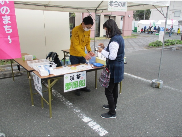 10月30日、豊川市のウィズ豊川にて「ふれ愛・みんなのフェスティバル」に参加し、ウィズ豊川内では施設紹介として、パンフレットやチラシの配布や利用者が制作した作品の展示や相談コーナーを、外では就労製品(焼き菓子)の販売を行いました。