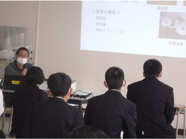 これまでは、施設見学や希全祭時のボランティア活動、クリスマスソングの演奏など生徒の皆さんが実際に希全の里へ来所し、ご利用者様との交流を図っていましたが、新型コロナウィルスの影響でそれらが実施できず、昨年から福祉教室の開催となり今回が2回目の実施となりました。