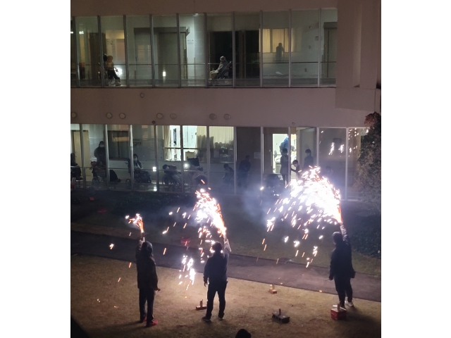 外に出ると肌寒かったですが、皆さん防寒対策をして花火を楽しみました。