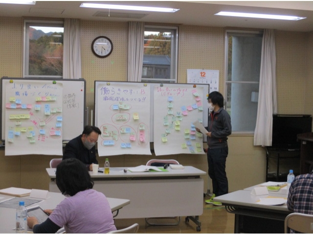 11月に役職者と非役職者がそれぞれに行ったワークショップの報告を行い、グループディスカッションの内容に対して、助言やヒントをいただきました。
