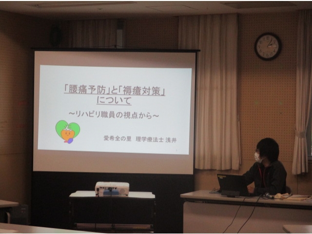 理学療法士の浅井主任による「腰痛予防と褥瘡対策について」と