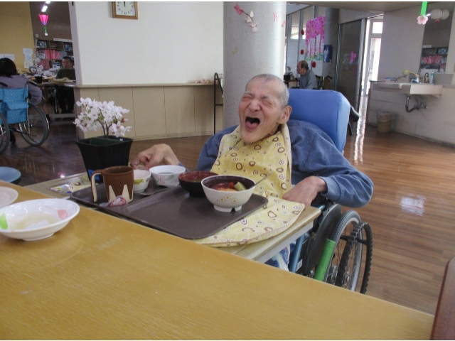 施設内でも桜を近くで眺められるように桜を生けて、食事テーブルに飾りました。桜を眺めながら、竹の子の炊き込みご飯や菜の花の和え物、桜ゼリーなどで食事のなかでも春を感じていただきました♪