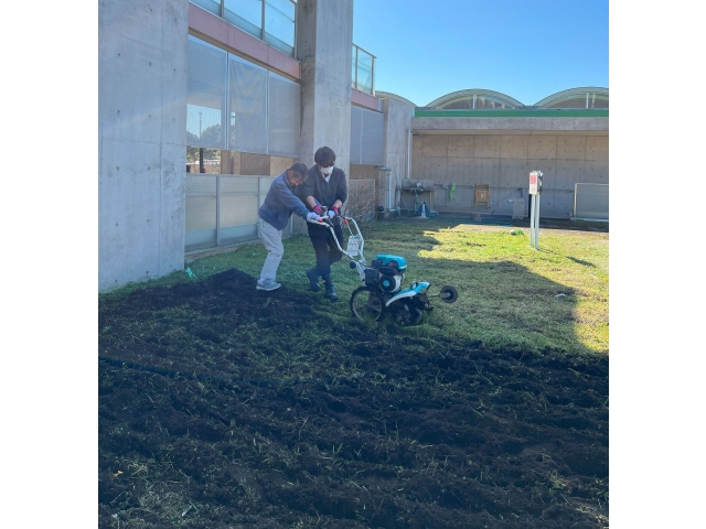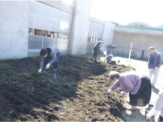 クワや耕運機を使用して土を耕し、雑草を取り除いていきます。