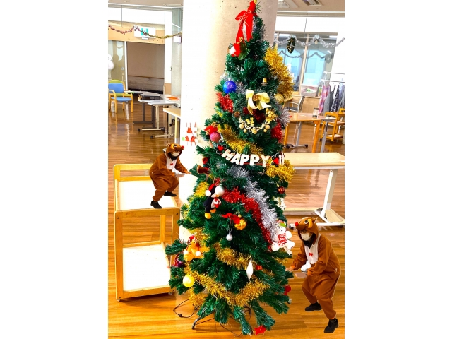 「メリークリスマス!!」と、所長サンタ🎅さんがご挨拶。