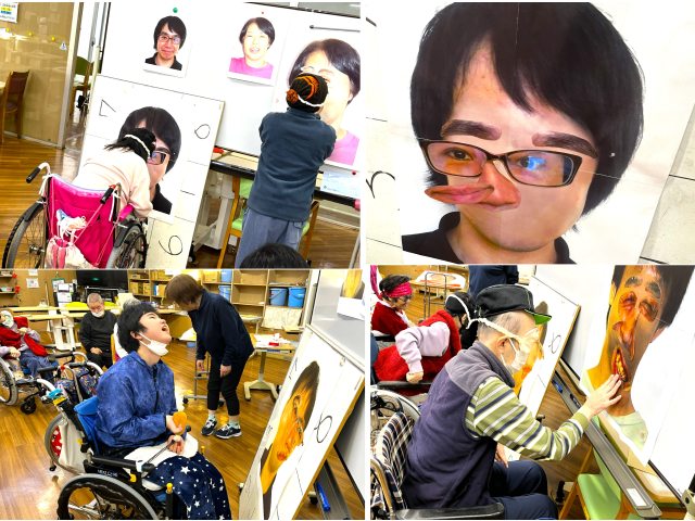 ご利用者様からの「上、上!」「右、もっと右!」という大きな声で完成した芸術的(!?)な顔を見て、一同大笑い!!