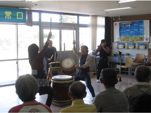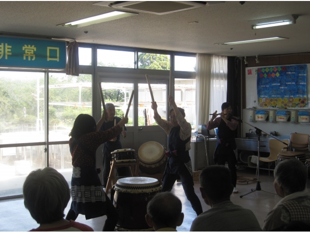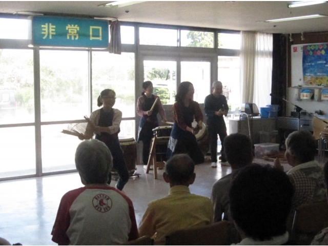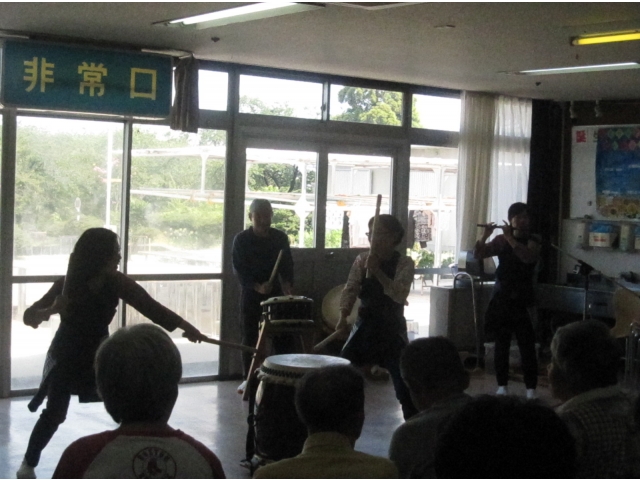 和太鼓ボランティアの皆様が来寮され、利用者のみなさんの前で見事な演奏や芸を披露されました。 迫力のある演奏に利用者のみなさんは、大変感激しておりました。(^_^)