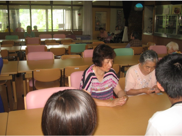 半田市立青山中学校ならわ学園分校の生徒のみなさんが、新生寮で奉仕活動をされました。草むしりなどのボランティア活動に頑張った後に、利用者のみなさんとオセロやトランプで交流をされました。