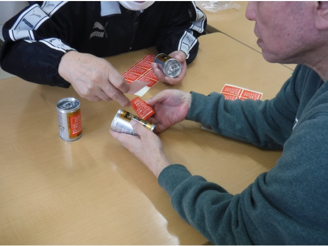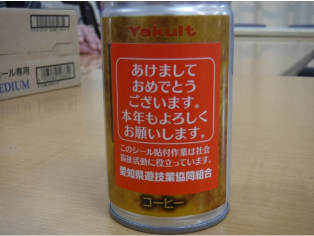 年の瀬が近づいてくるこの時期に、株式会社ヤクルト東海様から缶コーヒーなどにお正月挨拶用のシール貼り作業をいただいております。 新生寮で貼られた商品は、お正月のパチンコホールのサービスとして配られるとのことです。