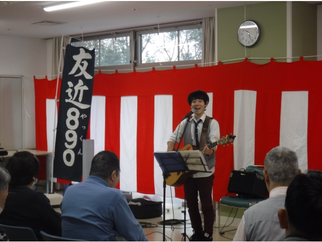 平成30年12月7日歌いながら書道をする日本唯一のシンガーソングライター友近890(やっくん)さんが来寮され、ボランティアライブを行っていただきました。