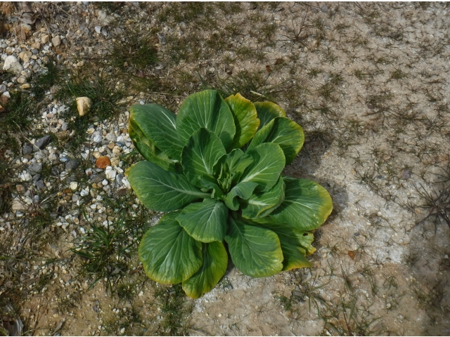 新生寮内の敷地に自生していた白菜は、今のところ順調に成長しています。