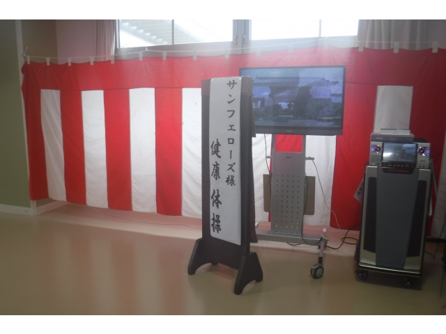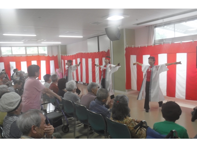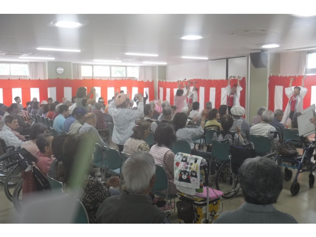 健康体操でボランティアをお願いしているサンフェローズ様のダンスを披露していただきました。利用者の皆様の中には、一緒に踊られる方が多くいらっしゃいました。