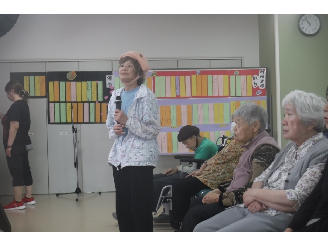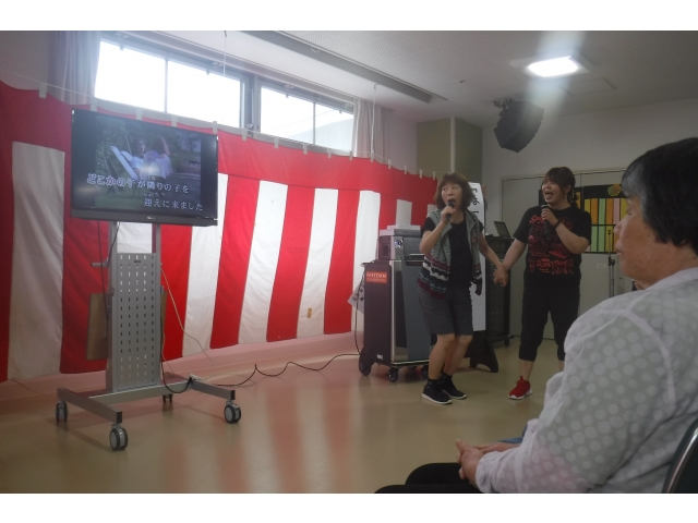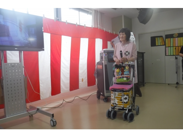 利用者の皆様によるカラオケ大会が行われ、中には職員とデュエットをお願いされる方もいて、皆様で盛り上がりました。