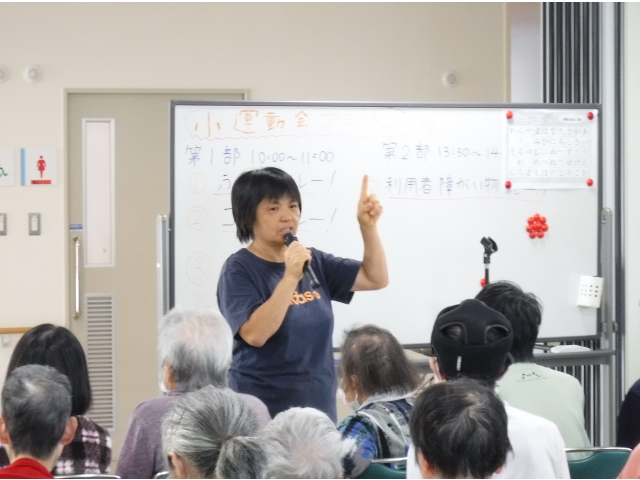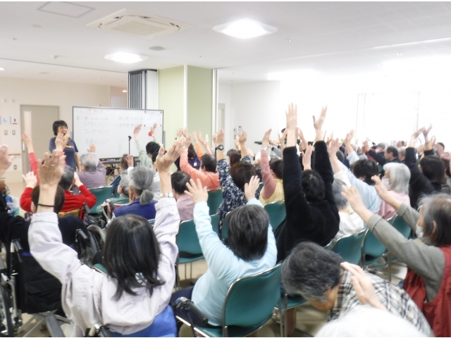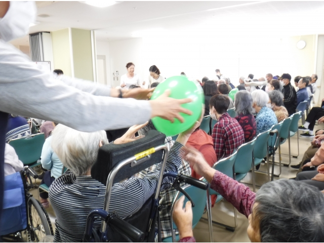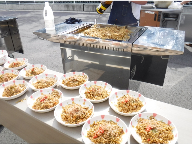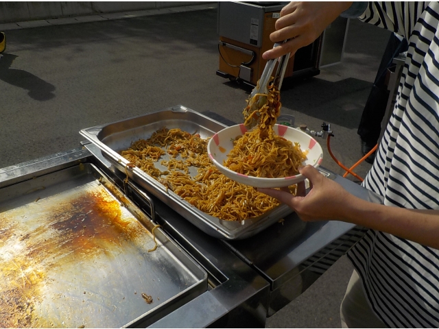 午前は風船やボール渡しゲームや、名前ビンゴを行い、昼食は晴天の秋空の下、野外で調理した焼きそばをみんなで味わいました。