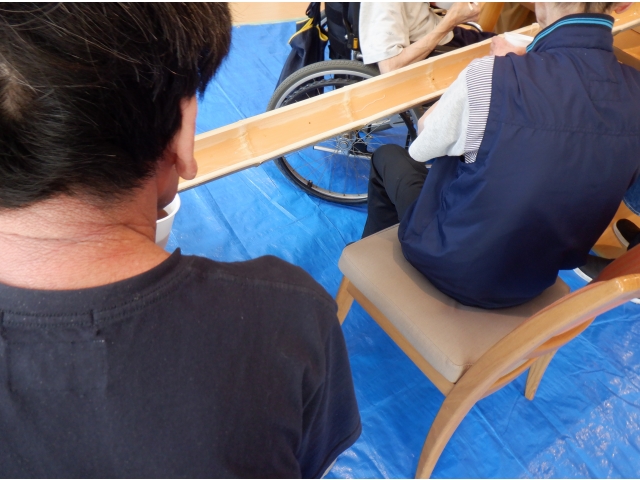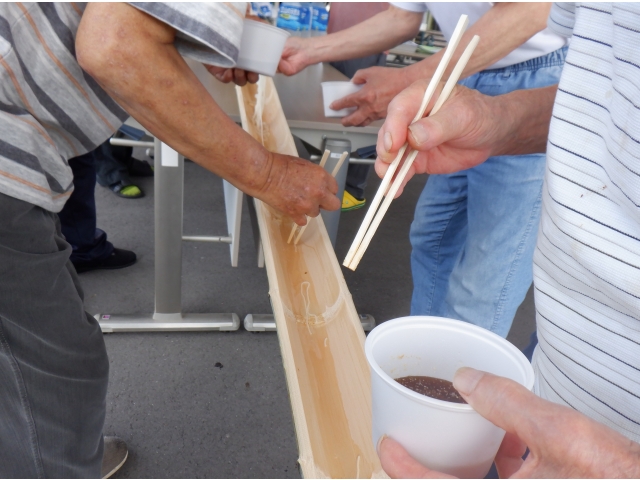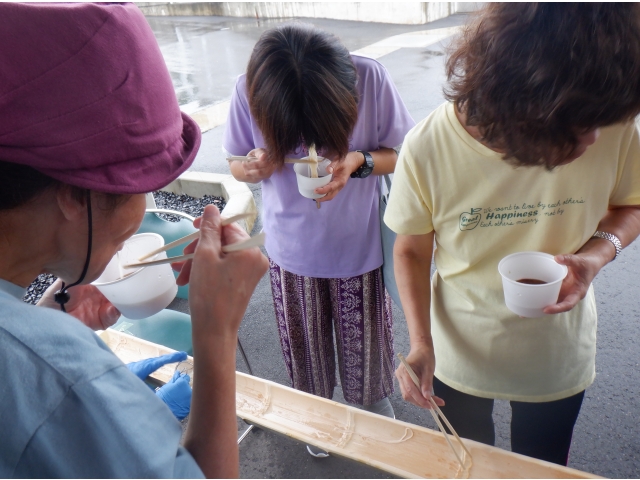 第4回目の最終日は、梅雨も明けたかのような快晴でした。しかし、とても気温も高いため、室内にて涼みながらの開催となりました。今年最後の流しそうめんであり、とても賑やかに楽しんでいただくことができました。