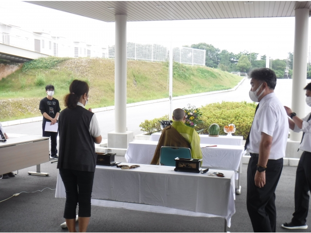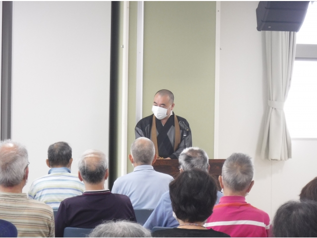 生前一緒に過ごされた利用者の皆さんに参加していただいて、お亡くなりになられた方を職員と一緒にしのびました。その後ご住職の説法を拝聴いたしました。
