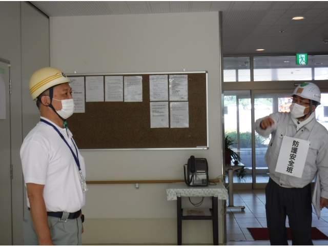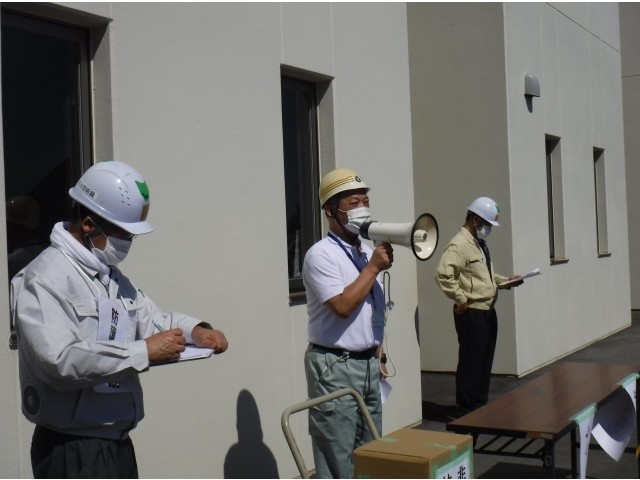 令和2年9月5日に総合防災訓練を行いました。例年は同じ愛フルタウンの愛厚半田の里、愛厚ならわ学園と地域の鴉根区、鴻ノ松区の住民の皆様と合同訓練が行われるのですが、新型コロナウイルス感染防止のため、新生寮単独での総合防災訓練を実施しました。