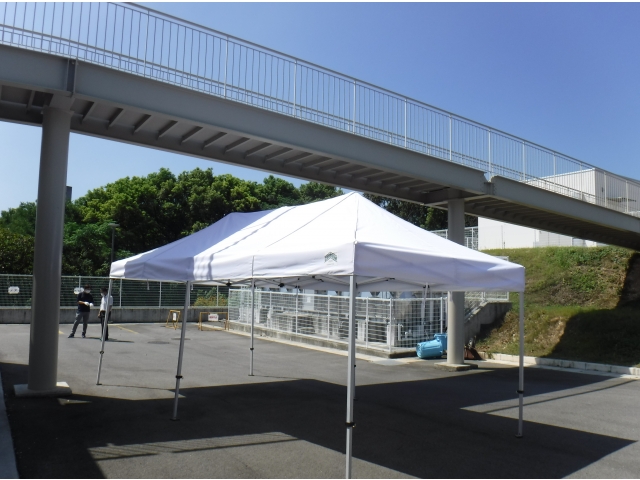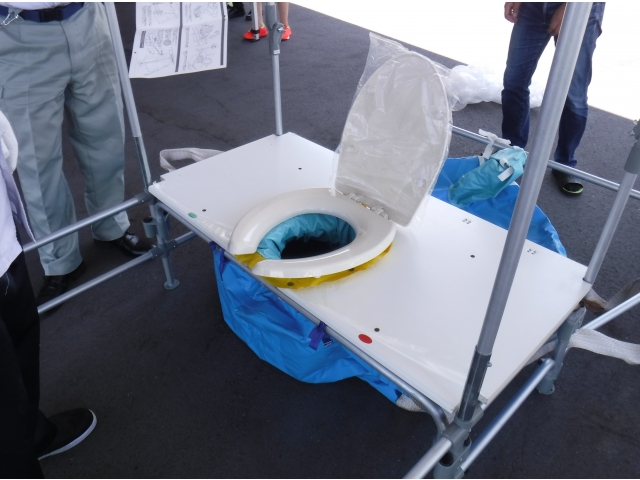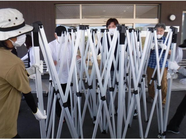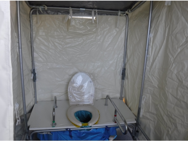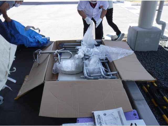 今年は職員による簡易トイレとワンタッチテントの組み立てを行いました。簡易トイレは普段組み立てることはまずありません。初めて組み立てた職員が多くいました。