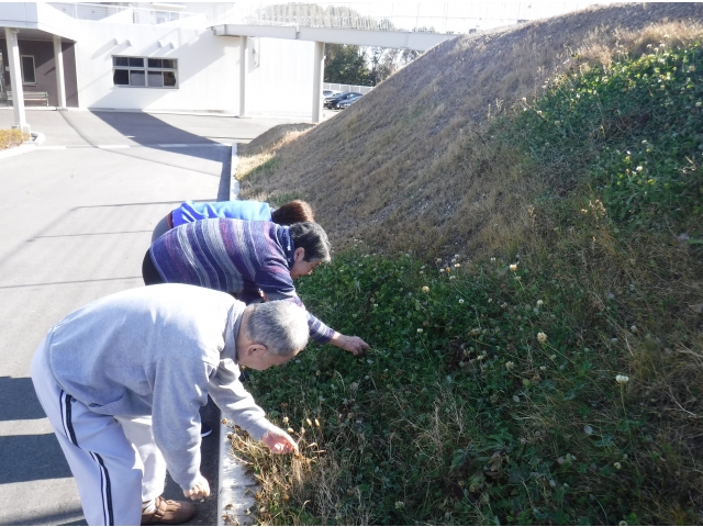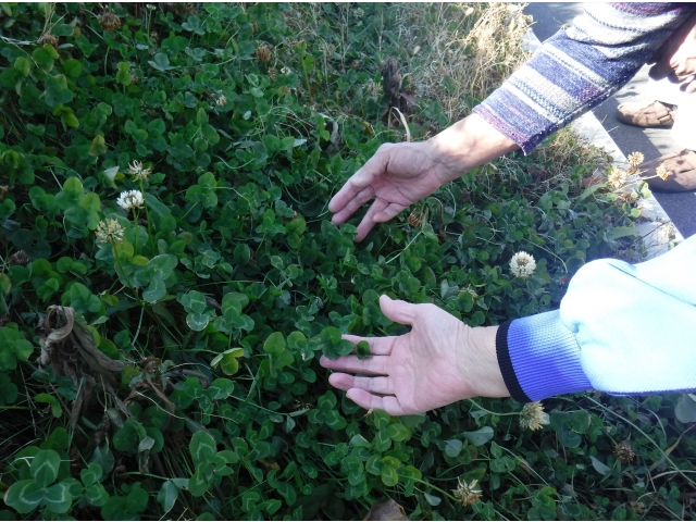 ☘ 天気の良い日には、数名の利用者と四つ葉のクローバー探しをしています☘