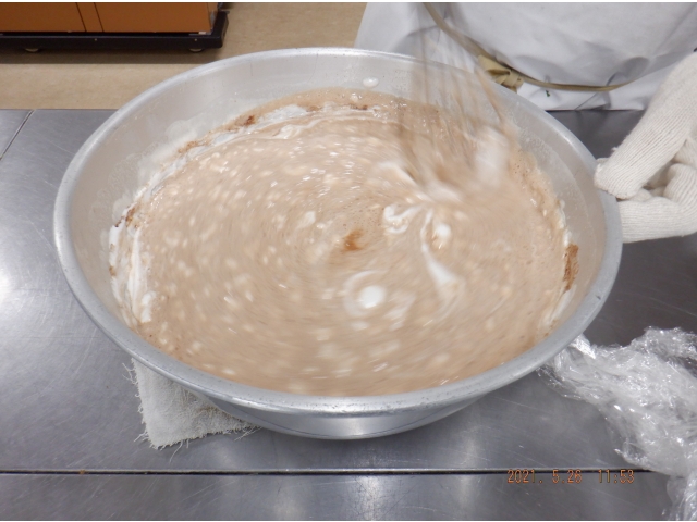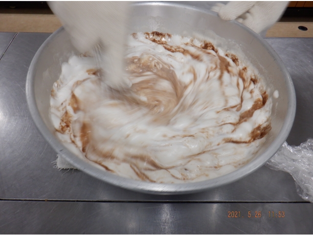 チョコとマシュマロに牛乳を加え、一緒に温めて…。
