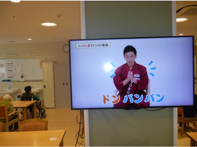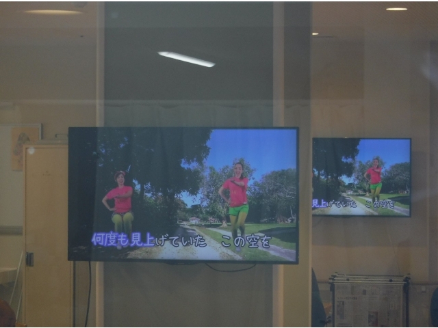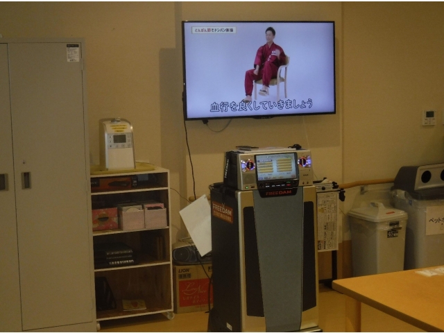 新生寮では昼食前の11:00ごろから、株式会社 東海第一興商様のDAMを使い口腔体操、健康体操を行っています。15分ぐらいですが、職員と一緒に行っています。口腔体操を行って嚥下機能の維持を図り、健康体操で足腰を維持して、いつまでも健康で居られますように。 ※今回の画像掲載は、株式会社 東海第一興商様のご厚意により、許可を得ております。ありがとうございました。