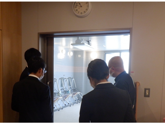 改築後3年が経ちましたが、コロナ禍以降、なかなかこういった取り組みが自由にならない日々が続いていました。本日は、万全の感染防止対策を取るため一部制限を設けたご案内でしたが、久しぶりに学生さんをお迎えできて嬉しかったです。