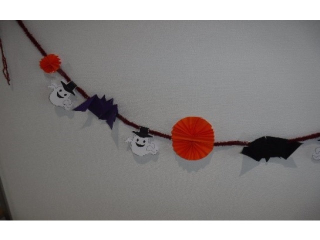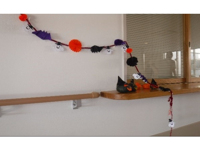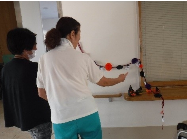コロナ禍で、外出できない毎日を送っている利用者様に少しでも笑顔が増えることを願い、利用者様と一緒に、屋内の飾りつけをしました。