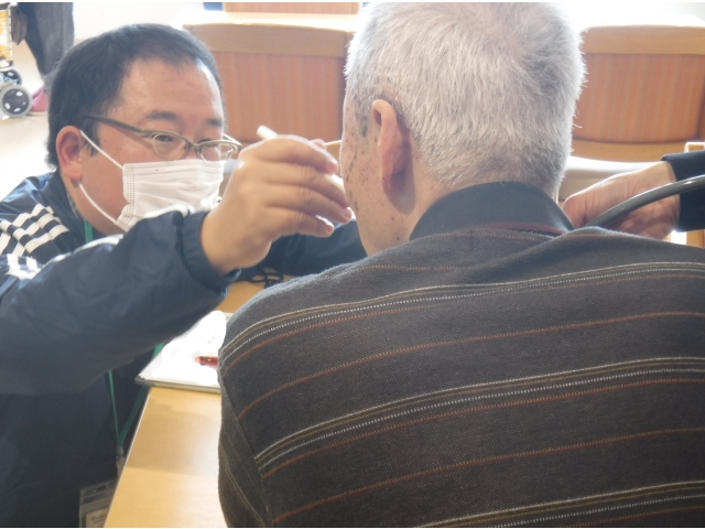 作業療法士の先生にご来寮いただき、1日かけて利用者の食事摂取状況の観察と助言、改訂水飲みテストや反復唾液嚥下テスト、さらには新生寮職員だけでは難しい嚥下判断指標を実施していただきました。職場研修では「嚥下と口腔ケアについて」講義を受け、高齢化・重度化の進む新生寮において、事業団の目指す「利用者が最後まで住み慣れた場所で生活ができるように」を達成できるよう、職員間で情報を共有し合って、チームプレーで取り組んでいかなければと再確認しました。