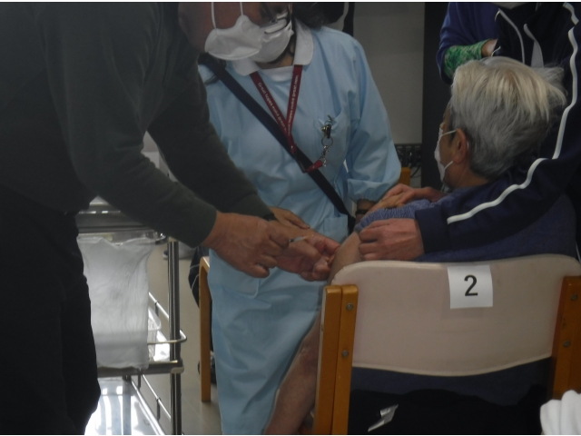 令和4年2月3日愛厚新生寮でも新型コロナウイルスのワクチン接種3回目開始されました。本日は利用者様26名、職員19名がワクチンを接種。3月中旬ごろにほぼすべての利用者様の接種を終える予定です。 皆様の無事なワクチン接種完了と、感染拡大第6波のピークアウトを切に願いたいと思います。