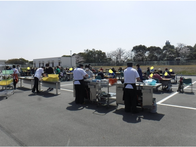 日頃は強い風が吹く新生寮ですが、今日は心地よい春風と暖かな日差しの中、グランドの片隅に咲いている満開の桜を眺めながらお花見食事会を開催しました。 久しぶりの屋外での食事を利用者の皆さまも楽しんでいただけたことと思います。